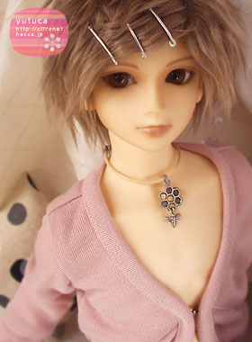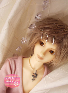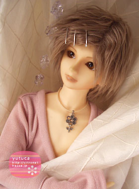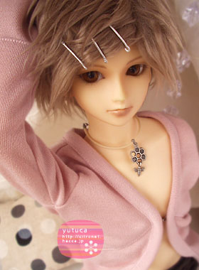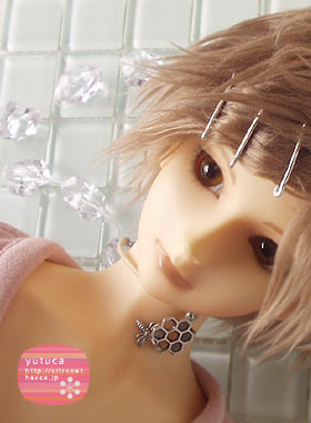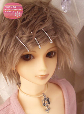 ボアウィッグにピンどめで、ちょっと珍しい雰囲気の柚束。
