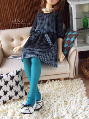 ミントワンピをカラータイツとパンプスでさらに大人ぽく。